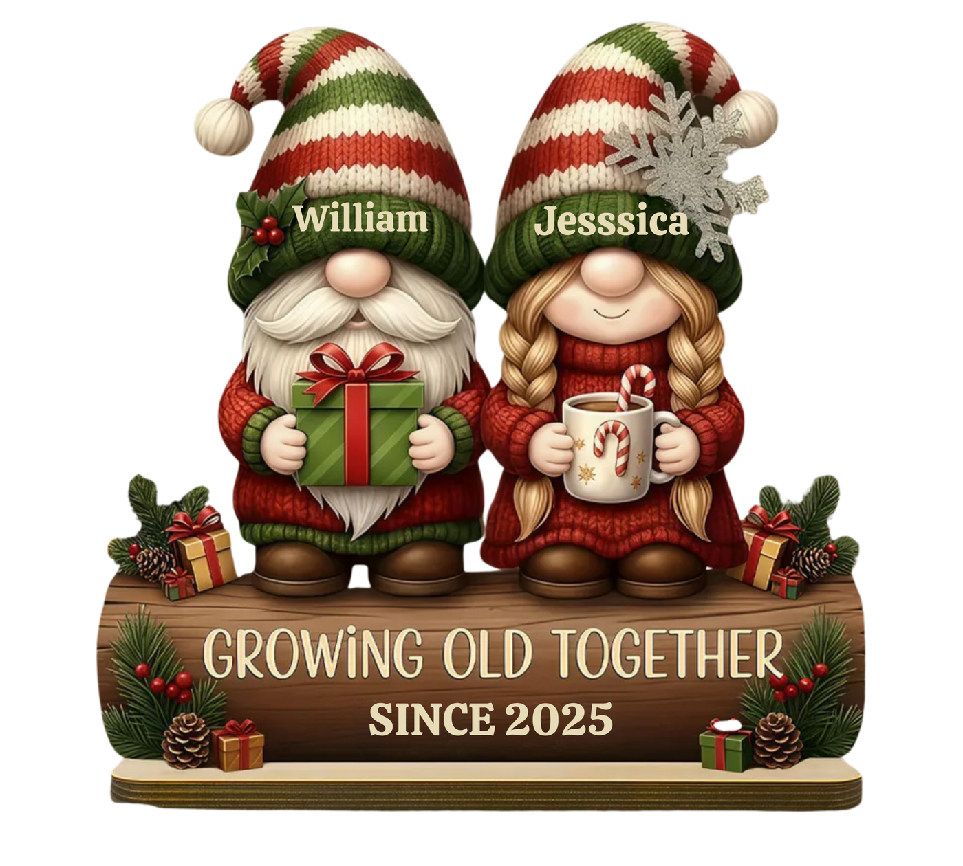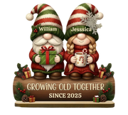 Personalized Gnome Couple Figurine, Growing Old Together Since 2025, Custom Christmas Decoration, Unique Holiday for Couple, Engraved Family Acrylic Plaque...